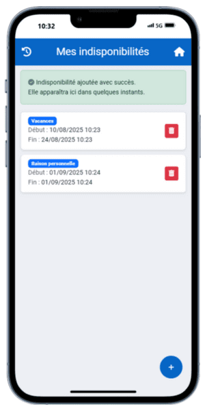 Indiquez vos périodes non disponibles. Elles sont automatiquement visibles.