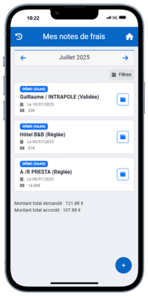 Tout est centralisé au même endroit (hôtel/resto, indemnités km, etc.)