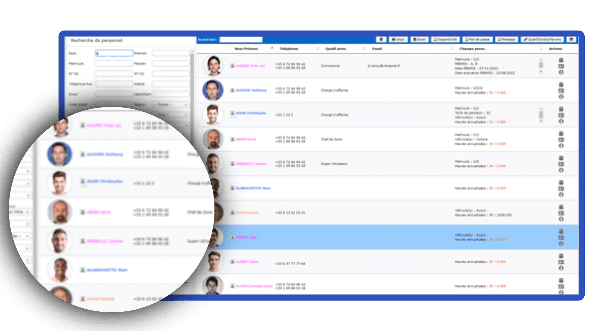 Historique complet : Consultez en un clic le parcours et les données clés de chaque collaborateur.